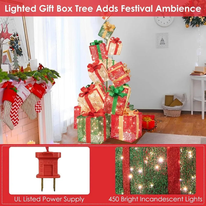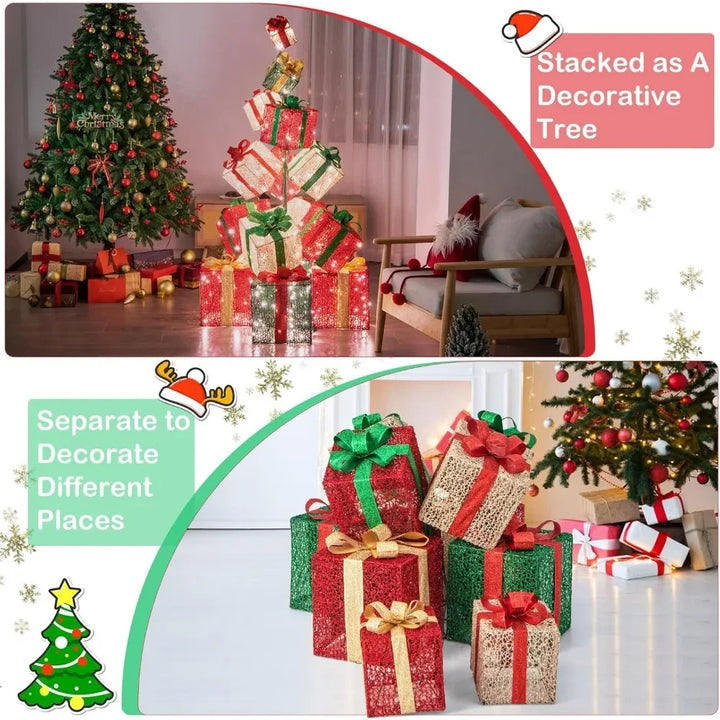 - 【Charming Lighted Decor】With 450 warm white incandescent lights, our gift box set will fill your space with a warm and inviting glow. Whether placed anywhere, these lights will create a mesmerizing ambiance that captivate people gather around this stunning centerpiece of holiday.
