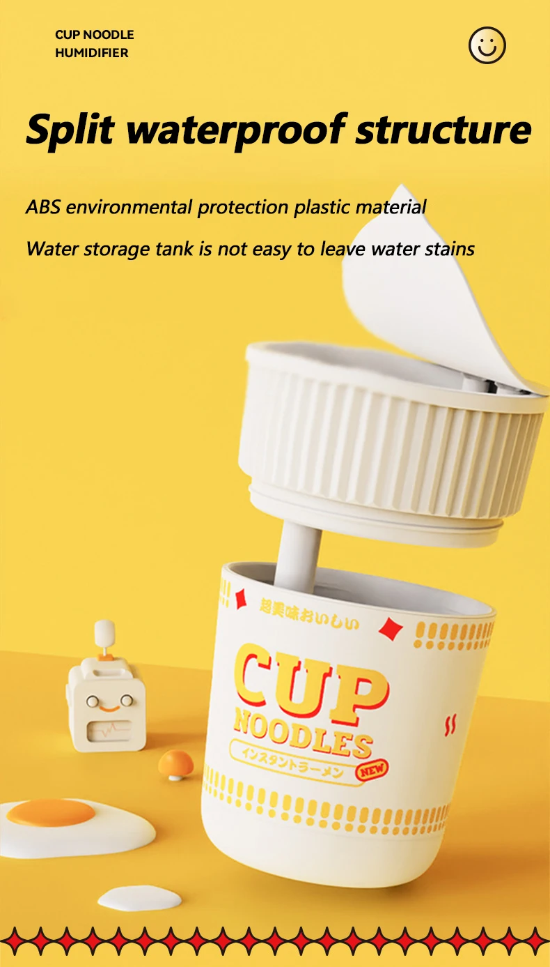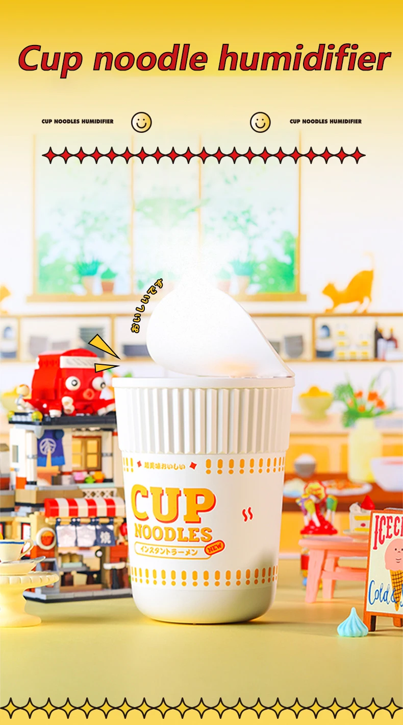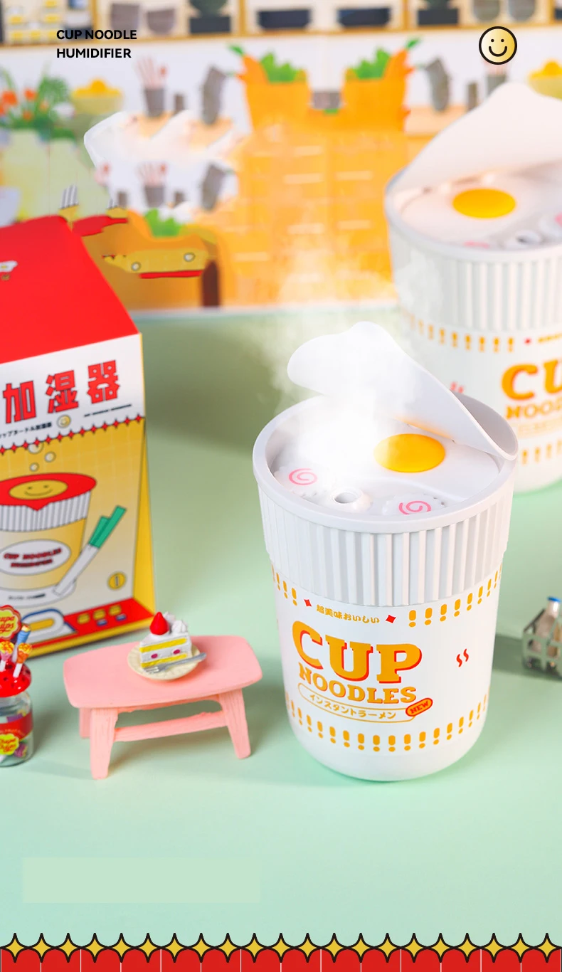 The Ramen Noodle Cup Humidifier is a nightstand humidifier that's styled just like a delicious cup of warm noodle soup with a happy little smile to brighten your day. Already an adorable piece of decor on its own, fill the cup with water and it produces a cool mist that will remind you of a cozy cup of steaming noodles.
