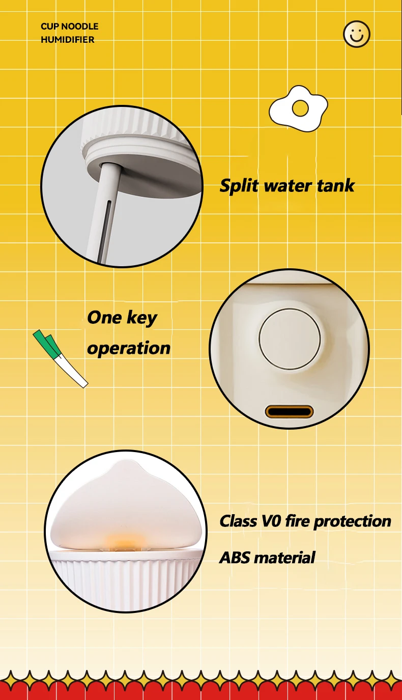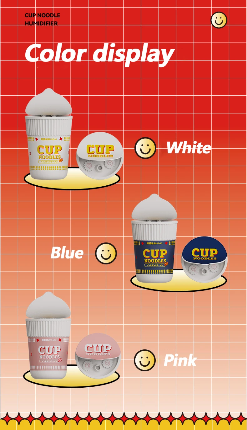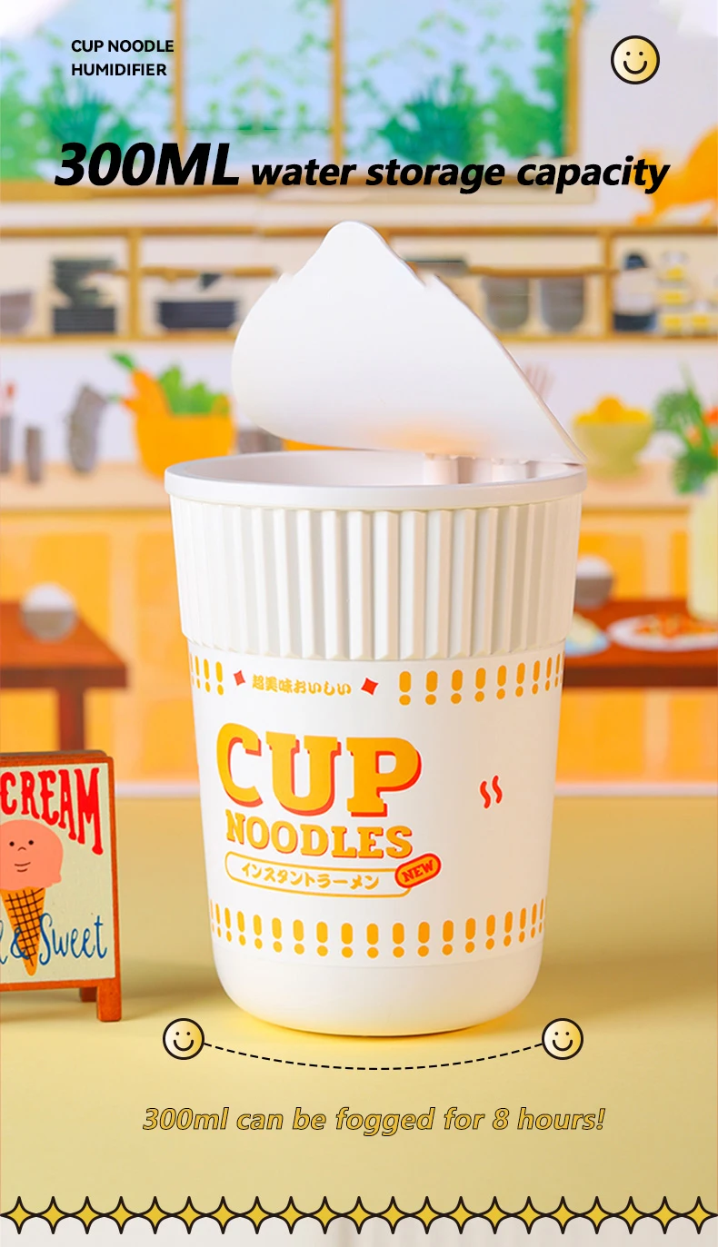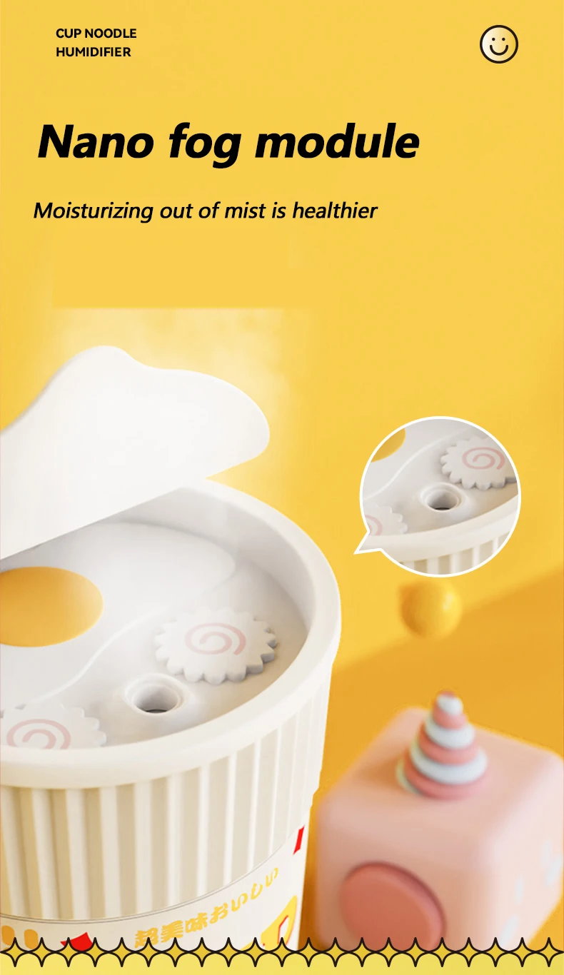 The Ramen Noodle Cup Humidifier is a nightstand humidifier that's styled just like a delicious cup of warm noodle soup with a happy little smile to brighten your day. Already an adorable piece of decor on its own, fill the cup with water and it produces a cool mist that will remind you of a cozy cup of steaming noodles.